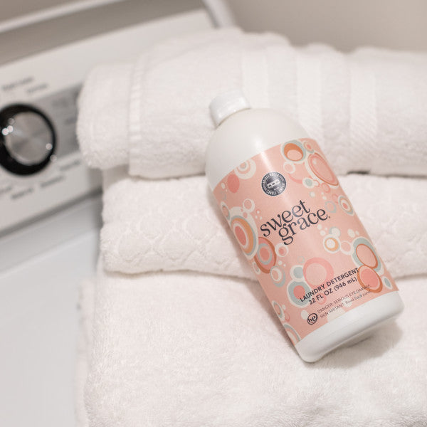 Give your laundry the VIP treatment with our 32 oz Sweet Grace Laundry Detergent. Safe and effective for washable fabrics, this luxurious formula is designed to sanitize while providing long-lasting, beautiful scent to clothing and linens.